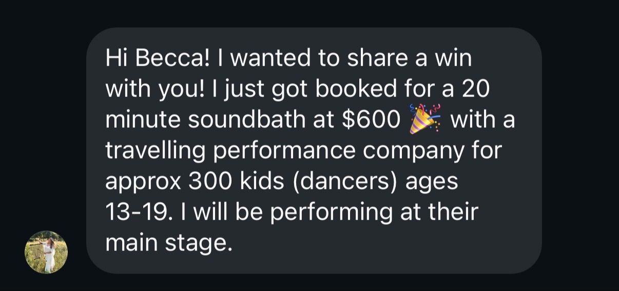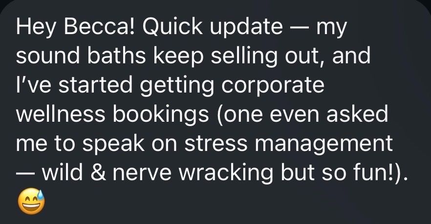 💫 step 2: market & pitch like a pro→ bridge your sound artistry into a thriving business. you’ll clarify your brand story, create marketing that actually converts, from social media content to professional assets, and master the art + science of pitching yourself to luxury studios, retreats, and corporate clients who pay premium rates. this is how you go from $22 community events to 4-figure sessions booked months in advance.
